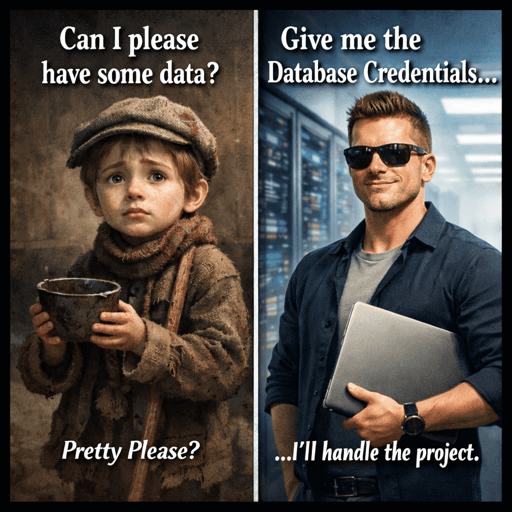 If you don't know how to use SQL? Well, you're stuck begging for help… waiting for someone to produce that nice clean data set you can analyze. Don't be this person.