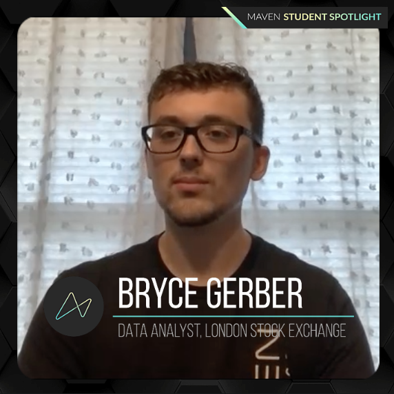 The entire Maven team was thrilled to hear that Bryce landed a role as a Data Analyst with the London Stock Exchange Group.