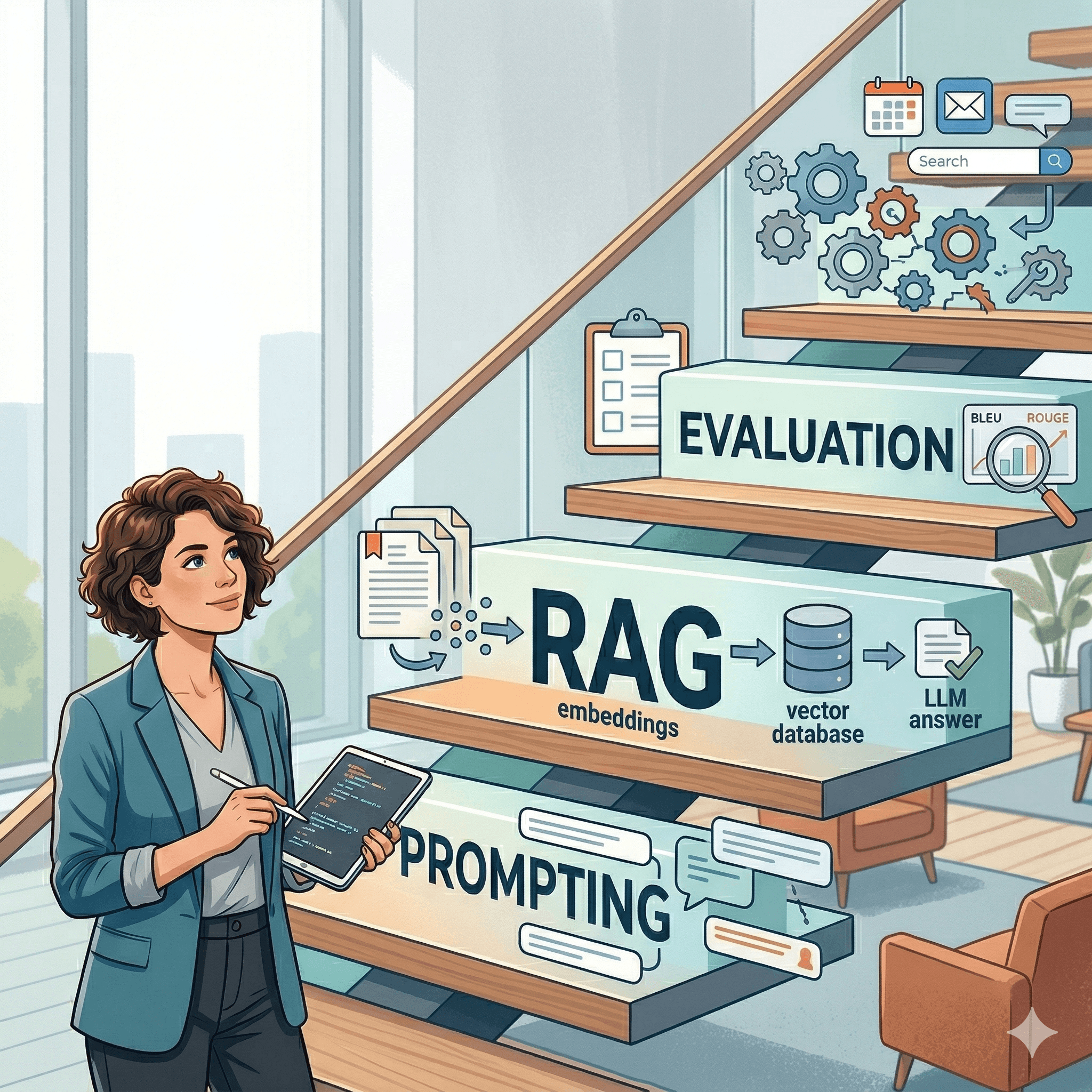 Start with how LLMs actually work, not at a research level, but enough to set realistic expectations. What is a context window (The maximum amount of tokens the model can use at one time) and why does it constrain your design choices? Why do LLMs hallucinate? What is tokenization and how does it affect cost and latency? This layer is about building the right mental model before you touch any tooling.