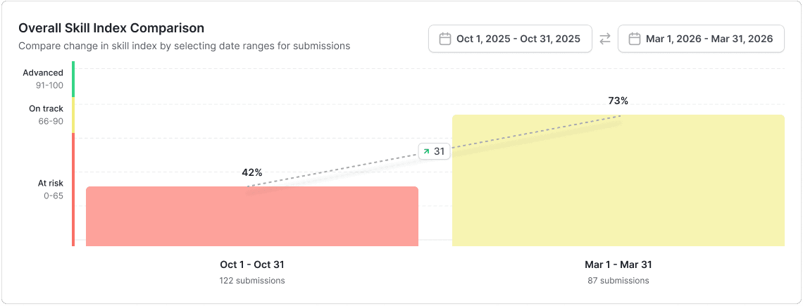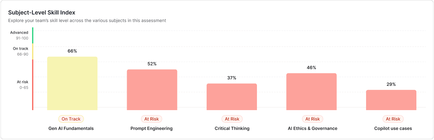 Your skills benchmark tells you who's ready, where the gaps are, and exactly where to focus first. It's free, it takes 30 minutes, and you leave with a clear starting point.